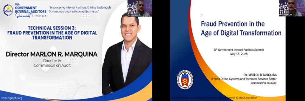 Technical Session 3 was presented by Dir. Marlon R. Marquina, Director IV of the Commission on Audit, who discussed Fraud Prevention in the Age of Digital Transformation, emphasizing strategies to detect and prevent fraud amid evolving digital systems and technologies.