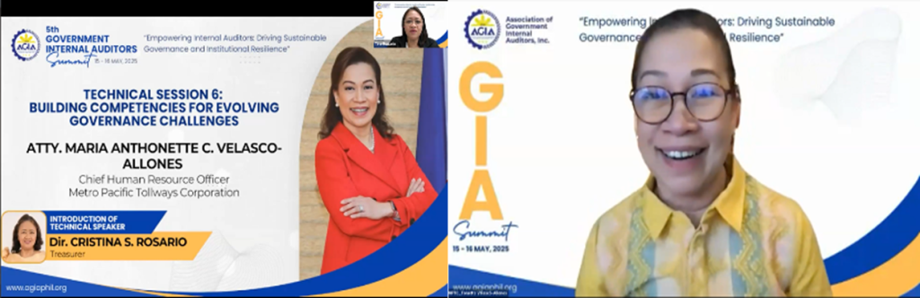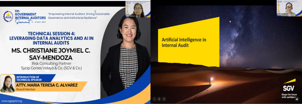 On Day 2, Ms. Christiane Joymiel C. Say-Mendoza, Risk Consulting Partner, SGV & Co., presented Technical Session 4 on leveraging data analytics and artificial intelligence in internal audits, demonstrating how technology can enhance audit efficiency and provide deeper insights. Technical Session 5, delivered by Ms. Maria Edelwina D. Carreon, Former AGIA Board of Director, emphasized the strategic partnership of internal auditors in institutional performance management and continuous improvement.