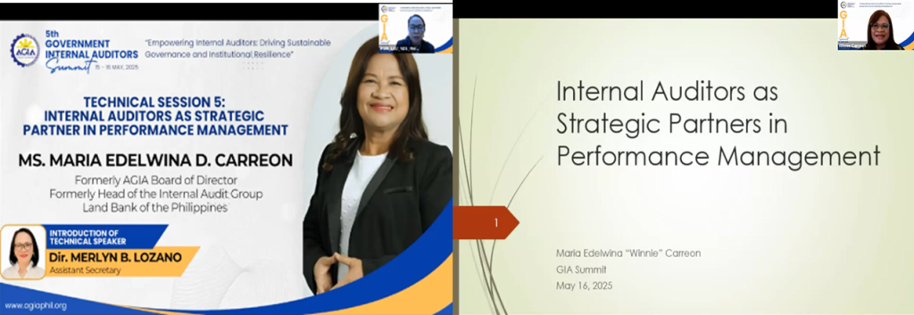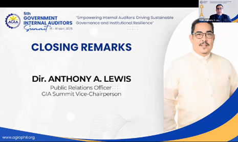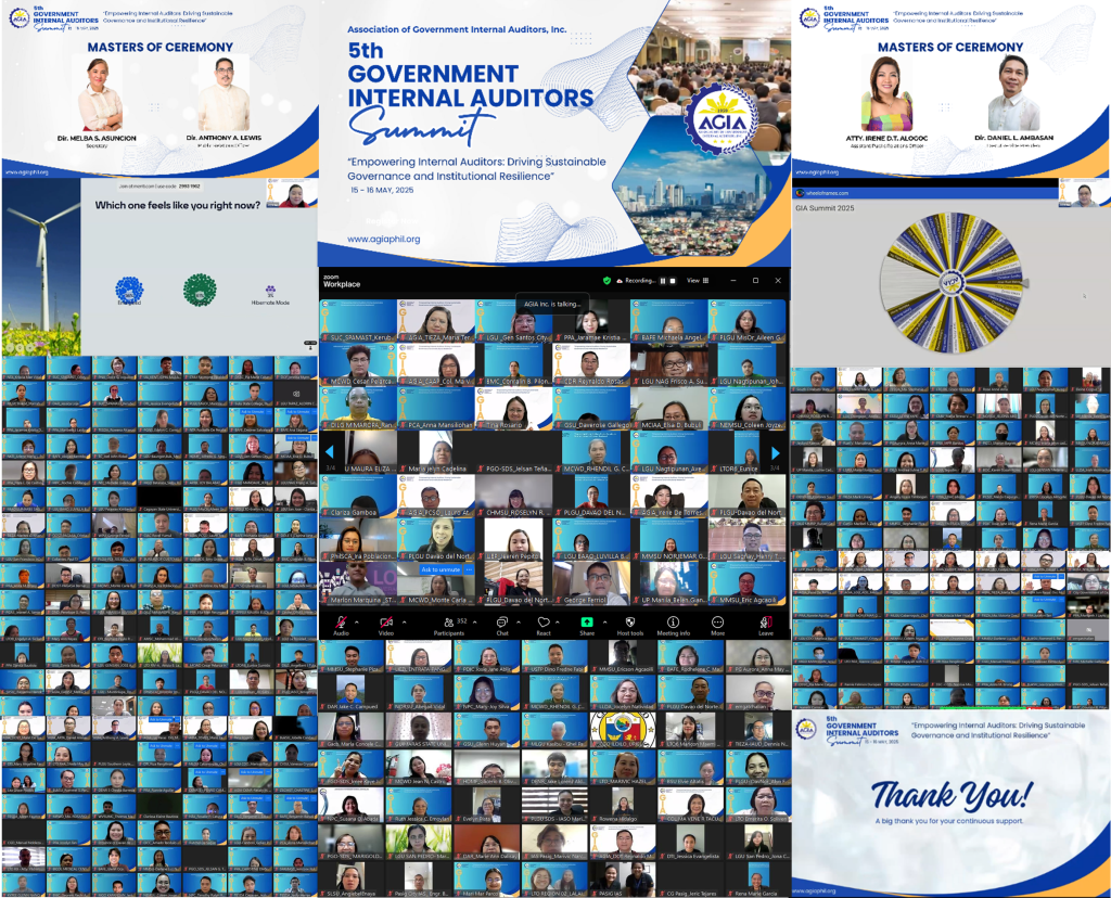 The 5th Government Internal Audit (GIA) Summit was successfully conducted on May 15-16, 2025, via Zoom, with a total of 350 participants composed of 114 from National Government Agencies (NGAs), 98 from Local Government Units (LGUs), 67 from Government-Owned and Controlled Corporations (GOCCs), and 71 from State Universities and Colleges (SUCs). The summit served as a dynamic platform for knowledge-sharing, professional development, and collaboration, emphasizing the evolving role of internal auditors in promoting transparency, accountability, and institutional resilience.