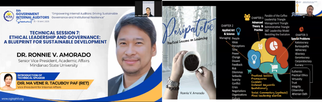 In the afternoon, Atty. Maria Anthonette C. Velasco-Allones, Chief Human Resource Officer of MPTC, led Technical Session 6 on building competencies to address evolving governance challenges, focusing on capacity-building for sustainability and resilience. The final session, Technical Session 7, was delivered by Dr. Ronnie V. Amorado, Senior Vice President for Academic Affairs, MSU, discussing the vital role of ethical leadership in governance and its significance as a blueprint for sustainable development.